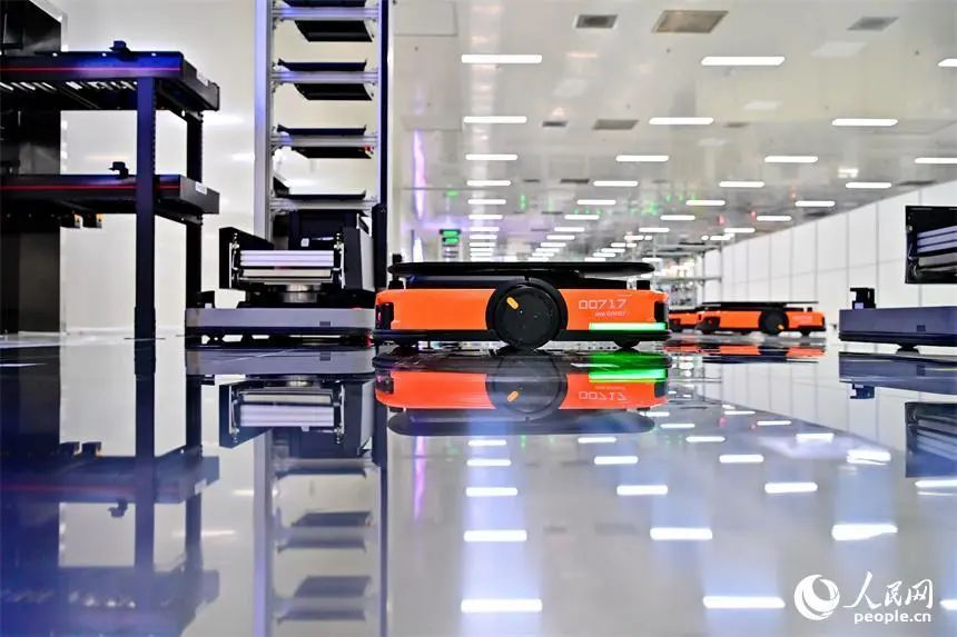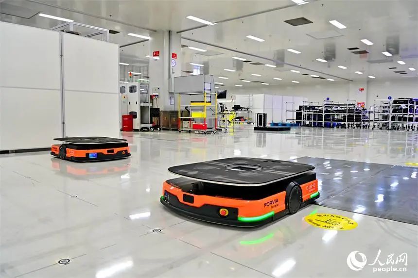 豐城市高新技術(shù)產(chǎn)業(yè)園區(qū)的一家汽車電子企業(yè)內(nèi),AGV運(yùn)輸車來(lái)回運(yùn)轉(zhuǎn)有序作業(yè),工人在加工車載電子產(chǎn)品。