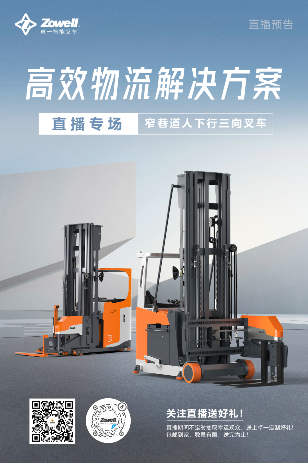 人下行三向叉車系列直播