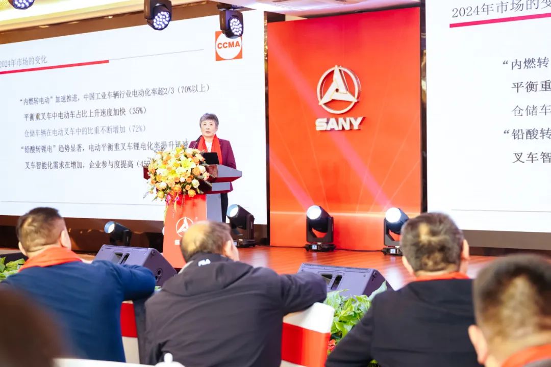 中國(guó)工程機(jī)械工業(yè)協(xié)會(huì)工業(yè)車輛分會(huì)秘書長(zhǎng)張潔為現(xiàn)場(chǎng)嘉賓帶來(lái)工業(yè)車輛行業(yè)2024年度發(fā)展報(bào)告,指明行業(yè)未來(lái)發(fā)展方向。張潔秘書長(zhǎng)希望行業(yè)同仁能夠基于大數(shù)據(jù)、大模型、AI等技術(shù),引導(dǎo)行業(yè)提升后市場(chǎng)業(yè)務(wù)的能力和水平,在全球范圍內(nèi)使后市場(chǎng)業(yè)務(wù)盈利逐漸成為叉車制造商、經(jīng)銷商、服務(wù)商的新的利潤(rùn)增長(zhǎng)點(diǎn),提升品牌形象,為打造全球化企業(yè)打好基礎(chǔ)。
