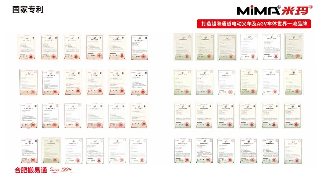 ?合肥搬易通(MiMA 米瑪)技術(shù)團隊匯聚超140名專業(yè)研發(fā)人員,憑借深厚的技術(shù)底蘊與持續(xù)的創(chuàng)新實踐,研發(fā)出一系列高性能電動叉車。公司現(xiàn)已擁有320余項國家技術(shù)專利,其中發(fā)明專利超120項,還參與起草制訂了6項國家標(biāo)準(zhǔn)。