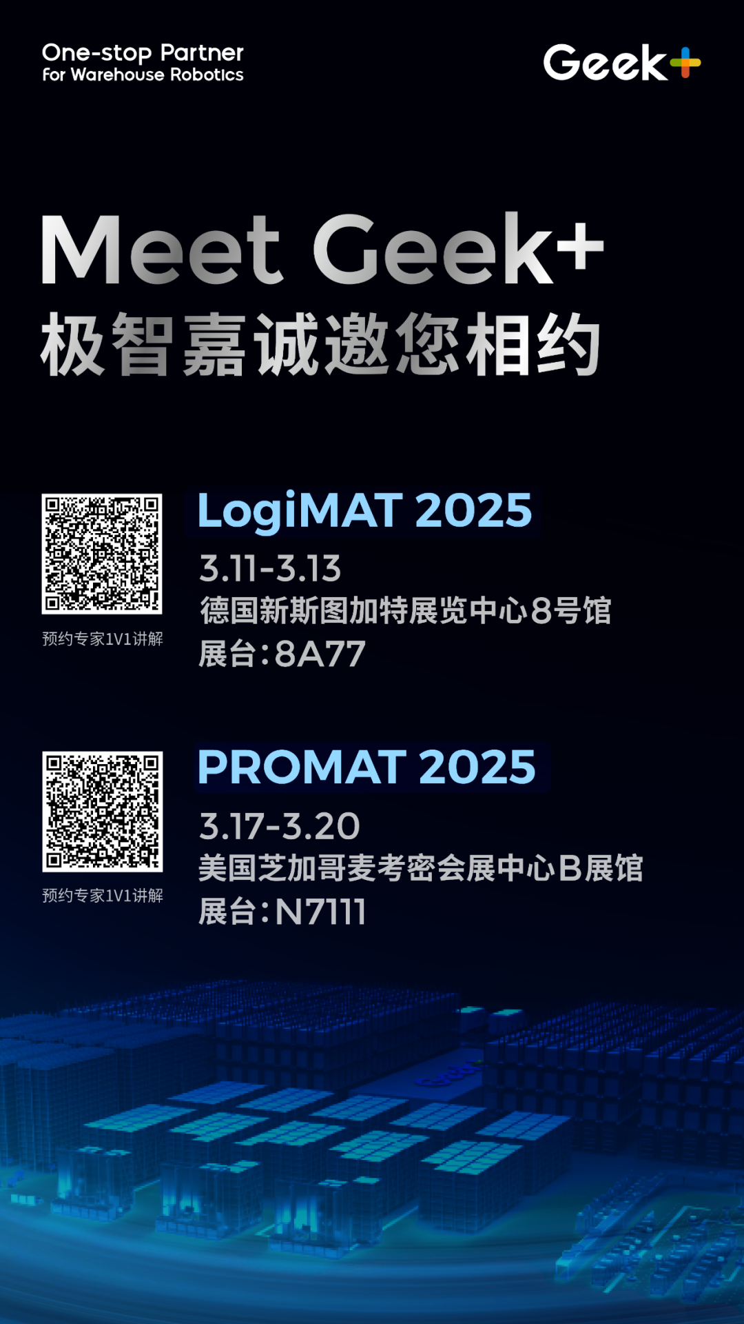 2025年,全球物流行業(yè)的兩大頂級盛會——德國LogiMAT與美國PROMAT開展在即,全球倉儲機器人引領(lǐng)者極智嘉(Geek++)蓄勢待發(fā),將攜旗下新一代解決方案閃亮登場,全方位展示在智能倉儲領(lǐng)域的最新突破!