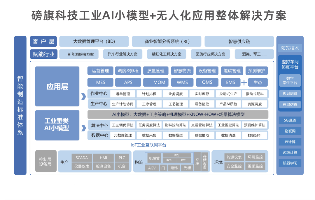 依托全域工業(yè)垂類AI小模型數(shù)字底座,磅旗科技構(gòu)建企業(yè)級(jí)無(wú)人工廠數(shù)字中臺(tái)LDS、多品類機(jī)器人混合調(diào)度ADS等領(lǐng)先產(chǎn)品矩陣,形成覆蓋設(shè)備監(jiān)控、能耗優(yōu)化、智能決策的數(shù)字神經(jīng)網(wǎng)絡(luò),打通產(chǎn)業(yè)鏈信息流和物料流,助力企業(yè)供應(yīng)鏈管理全面升級(jí),加速全球制造業(yè)邁向智能化新時(shí)代。