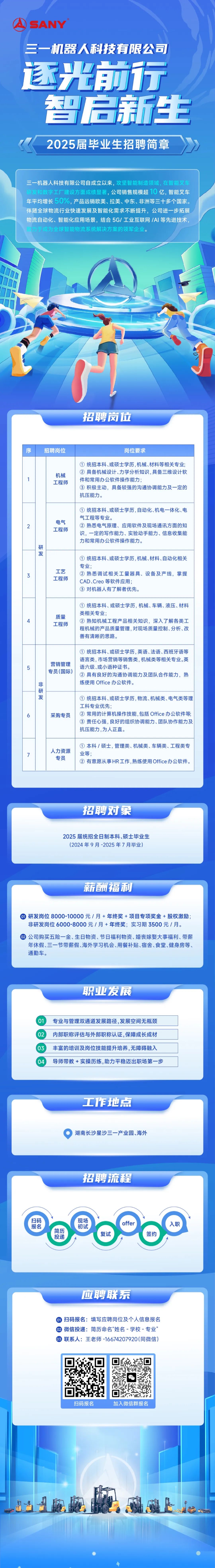 三一機器人科技有限公司在三一集團大力實施智能制造及數(shù)字化轉(zhuǎn)型升級的背暴下,由三一集團與三一重型裝備有限公司共同出資成立,是集團智能制造及數(shù)字化轉(zhuǎn)型發(fā)展的推進器。三一機器人主導建成了全球重工行業(yè)僅有的2座燈塔工廠(北京樁機工廠及湖南長沙18號工廠)及44個“燈塔工廠級”智能工廠和產(chǎn)線。公司秉承“智能制造先驅(qū)”的偉大使命,立志成為全球智能制造服務(wù)領(lǐng)軍企業(yè),傳承三一集團以“研發(fā)、制造、服務(wù)”為核心競爭力的經(jīng)營理念,結(jié)合5G/工業(yè)互聯(lián)網(wǎng)/AI等先進技術(shù),打造三大業(yè)務(wù)板塊一一智慧倉儲物流(立庫、AGV)、智能產(chǎn)線(機器人系統(tǒng)集成)、智能叉車(鋰電叉車)絕對競爭力產(chǎn)品,滿足集團內(nèi)部需求的同時,全面賦能工程機械、新能源、鋼結(jié)構(gòu)、化工化纖、酒水飲料、軌道交通等行業(yè)。