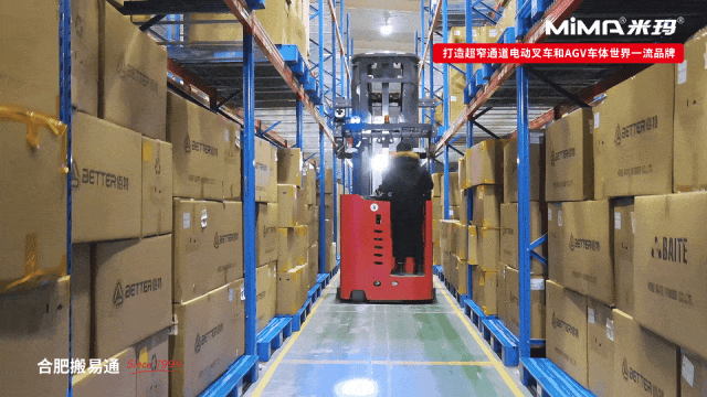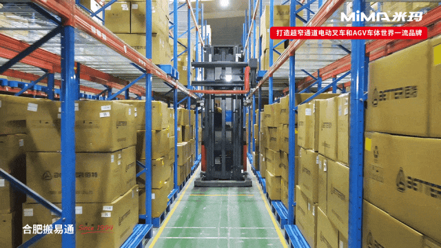 MiMA MC12額定載重1.2噸,最大起升高度9米,最窄作業(yè)通道僅需1.5米,充分利用倉庫橫向空間與垂直空間,以較低倉儲成本實現(xiàn)高密度存儲,為企業(yè)后續(xù)業(yè)務(wù)拓展提供充足的倉儲空間。