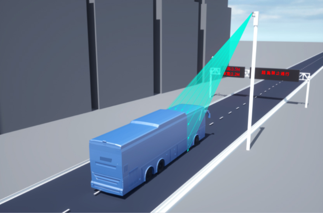 高精度激光雷達:采用高頻掃描激光雷達,具備高轉(zhuǎn)速及厘米級探測精度,可快速掃描獲取車輛長寬高等輪廓信息,構(gòu)建三維環(huán)境模型,精準計算車輛與限高物的距離和高度差。