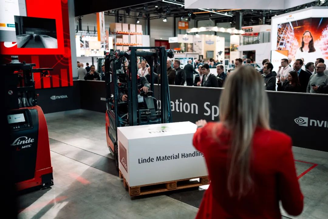 在LogiMAT展會(huì)上,凱傲集團(tuán)子公司林德物料搬運(yùn)展示了一套完全集成的貨物入庫解決方案,包括一臺(tái)自主移動(dòng)機(jī)器人(AMR)和一輛手動(dòng)叉車,兩者均采用人工智能技術(shù)。該解決方案在英偉達(dá)的Omniverse中以數(shù)字化形式呈現(xiàn),可顯示叉車的實(shí)時(shí)定位。車載和固定攝像頭在英偉達(dá)硬件上運(yùn)行,可捕捉和處理實(shí)時(shí)操作數(shù)據(jù)。整個(gè)解決方案在不斷發(fā)展變化的模擬環(huán)境中運(yùn)行,為大規(guī)模優(yōu)化車輛協(xié)調(diào)和路線規(guī)劃做好準(zhǔn)備。此外,叉車還具備應(yīng)用程序功能,能夠持續(xù)升級(jí)軟件,增強(qiáng)人員識(shí)別和避障等功能。