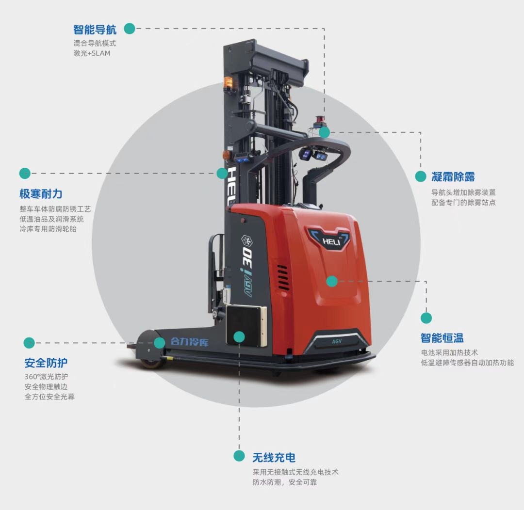 合力憑借深厚的技術(shù)沉淀和豐富的制造經(jīng)驗(yàn),推出冷鏈專用版叉車AGV?;?strong>“優(yōu)質(zhì)本體+先進(jìn)控制+溫濕系統(tǒng)+智能平臺”打造領(lǐng)先一代的冷庫叉車AGV—CQD系列,成功攻克了-30℃極低溫度環(huán)境下的“高位存儲+智能堆疊+接駁搬運(yùn)”等場景一體化作業(yè)難題。