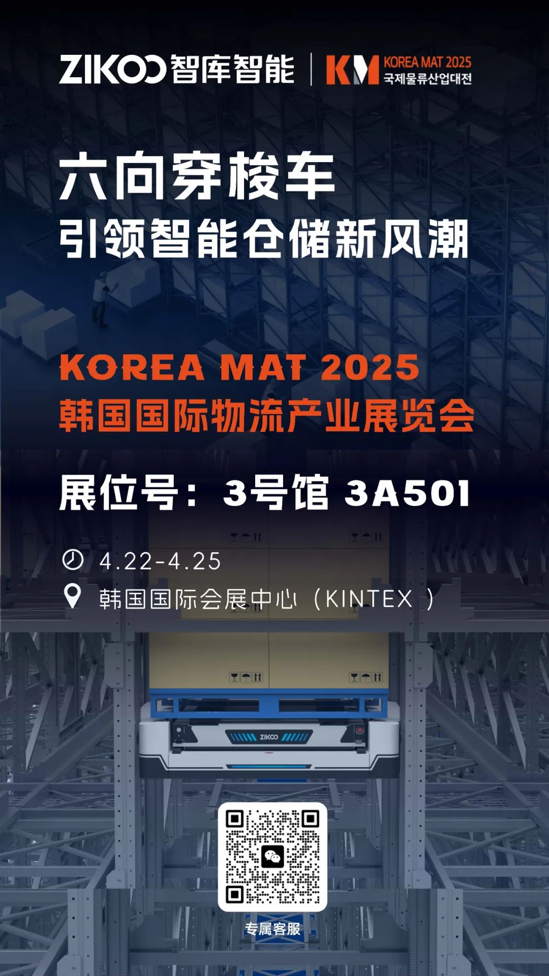 智庫(kù)智能的六向穿梭車(chē)即將亮相亞洲兩大行業(yè)盛會(huì)——日本關(guān)西物流展(KANSAI LOGIX 2025)&韓國(guó)國(guó)際物流產(chǎn)業(yè)展覽會(huì)(KOREA MAT 2025),與全球物流行業(yè)精英共話未來(lái)!
