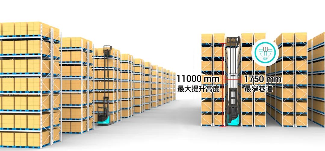 傳統(tǒng)叉車(chē)需預(yù)留3米以上通道,倉(cāng)庫(kù)30%面積被“吃掉”。勱微無(wú)人叉車(chē)僅需1.75米巷道,貨架層高直抵11米,空間利用率大幅飆升。