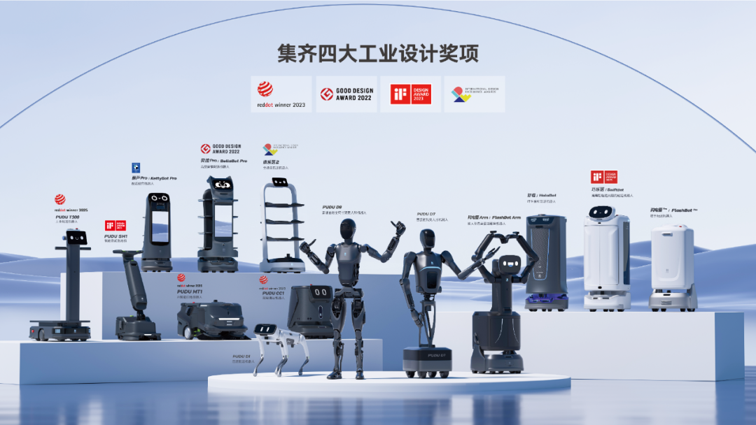 作為產(chǎn)品設(shè)計(jì)“卷王”,普渡早在23年就已陸續(xù)集齊德國紅點(diǎn)獎(jiǎng)、日本G-Mark獎(jiǎng)、美國IDEA獎(jiǎng)、德國iF獎(jiǎng)等全球最具影響力的工業(yè)設(shè)計(jì)頂級(jí)獎(jiǎng)項(xiàng),是國內(nèi)最早且唯一實(shí)現(xiàn)工業(yè)設(shè)計(jì)大滿貫的商用服務(wù)機(jī)器人品牌。一直以來,普渡機(jī)器人的獲獎(jiǎng)邏輯并非“為設(shè)計(jì)而設(shè)計(jì)”,而是將設(shè)計(jì)作為解決行業(yè)痛點(diǎn)的底層代碼,通過設(shè)計(jì)來解決實(shí)際問題,從而推動(dòng)行業(yè)的發(fā)展。