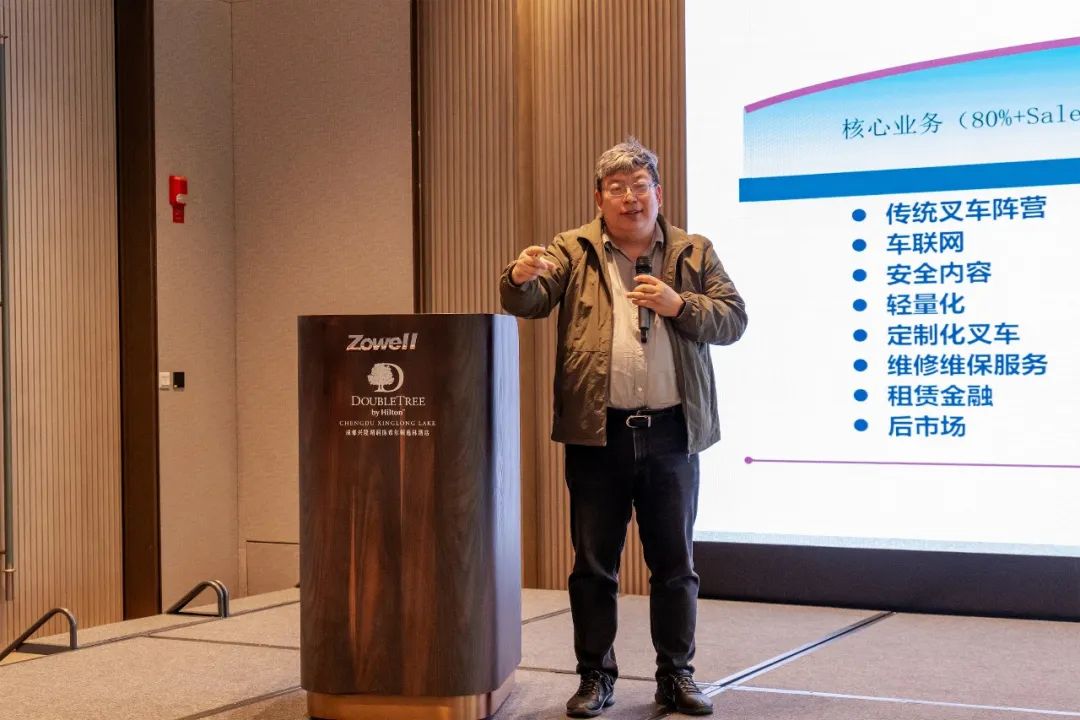 其后,成都弘川天成機(jī)械設(shè)備有限公司向總作為受邀嘉賓代表上臺(tái),感謝卓一的盛情邀約,并作為與卓一合作十多年的伙伴,回顧了雙方的合作歷程。向總對(duì)卓一在窄巷道叉車這一細(xì)分領(lǐng)域的專注深耕、在物流裝備領(lǐng)域持續(xù)的技術(shù)創(chuàng)新表達(dá)了極大的肯定!最后,向總言明了對(duì)未來繼續(xù)與卓一深化合作的期待,也表達(dá)了對(duì)本次交流會(huì)圓滿成功的祝愿!
