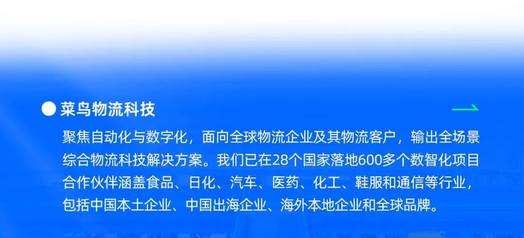 此次簽署的項(xiàng)目涉及兩大跨國(guó)集團(tuán)在全球的物流倉(cāng)儲(chǔ)和分撥自動(dòng)化升級(jí),將由菜鳥(niǎo)物流科技提供從設(shè)計(jì)到施工的全鏈路服務(wù),一期項(xiàng)目涉及到的金額就已接近1億美元。