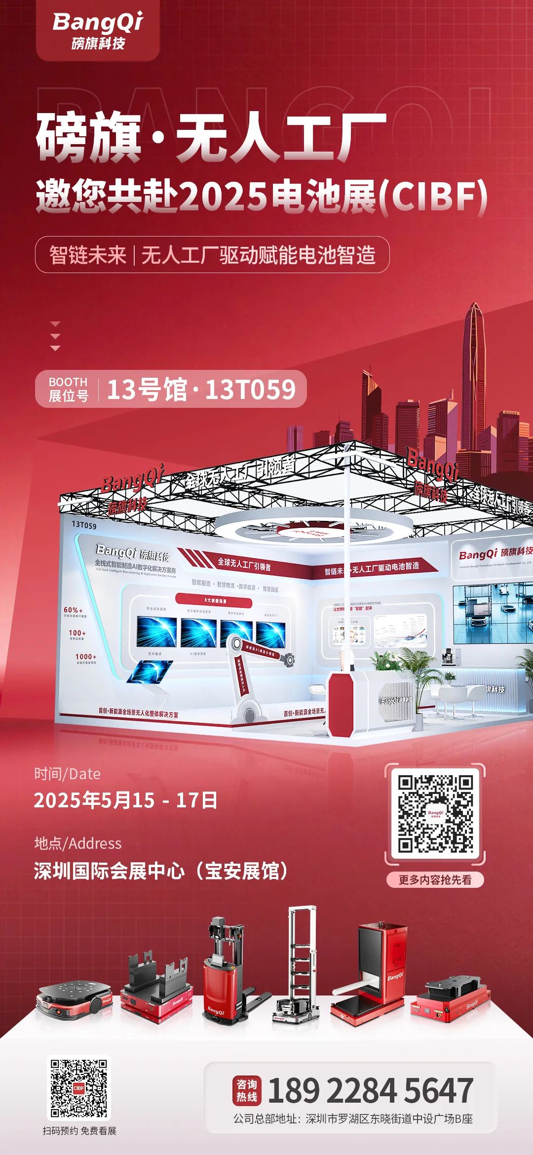 作為全球無人工廠引領(lǐng)者,磅旗科技將重磅亮相CIBF 2025,以《智鏈未來|磅旗·無人工廠驅(qū)動賦能電池智造》為主題,帶來多款前沿機(jī)器人產(chǎn)品及AI無人化解決方案,全面展示如何以技術(shù)驅(qū)動電池制造智能升級、降本增效,助力構(gòu)建智能化、數(shù)字化、無人化的新型工廠