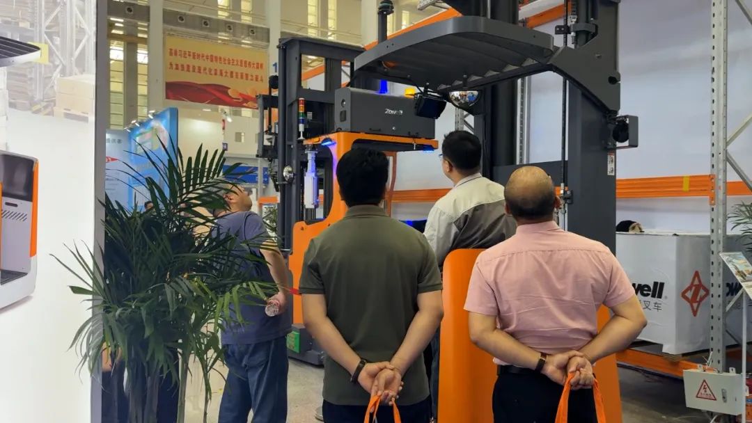 無(wú)人叉車(chē)動(dòng)態(tài)演示區(qū)也保持著高人氣,卓一三向AGV叉車(chē)最大載荷1.6噸、最大起升高度9m、貨叉可實(shí)現(xiàn)180°旋轉(zhuǎn)。通過(guò)實(shí)景模擬,卓一智能叉車(chē)展示了三向AGV叉車(chē)的高精度自動(dòng)導(dǎo)航、自動(dòng)運(yùn)輸及自動(dòng)存取貨物功能。在AGV項(xiàng)目案例視頻中,跨樓層轉(zhuǎn)運(yùn)、全方位智能避障、自動(dòng)充電等無(wú)人化技術(shù)優(yōu)勢(shì)也一一呈現(xiàn),不少專(zhuān)業(yè)客戶(hù)就方案規(guī)劃及實(shí)施細(xì)節(jié)與卓一銷(xiāo)售人員展開(kāi)了探討。