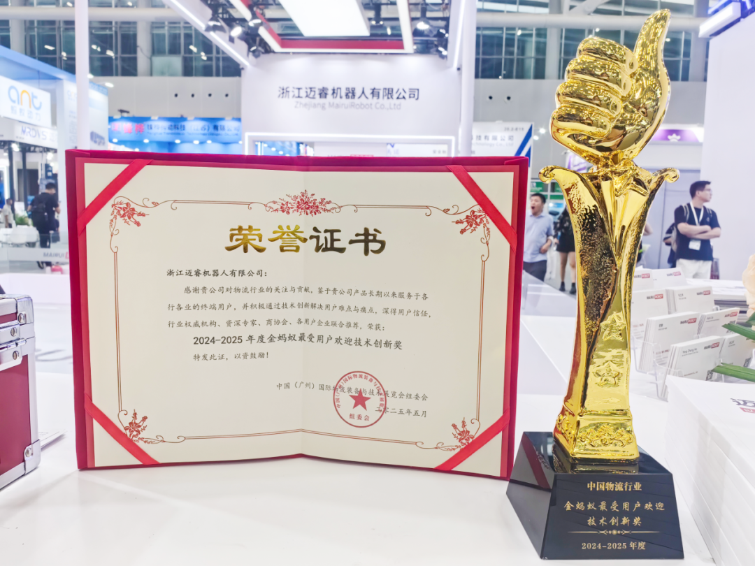 展會(huì)期間,邁睿機(jī)器人榮膺2024-2025年度“金螞蟻?zhàn)钍苡脩魵g迎技術(shù)創(chuàng)新獎(jiǎng)”,技術(shù)實(shí)力與市場(chǎng)口碑再獲雙重印證。