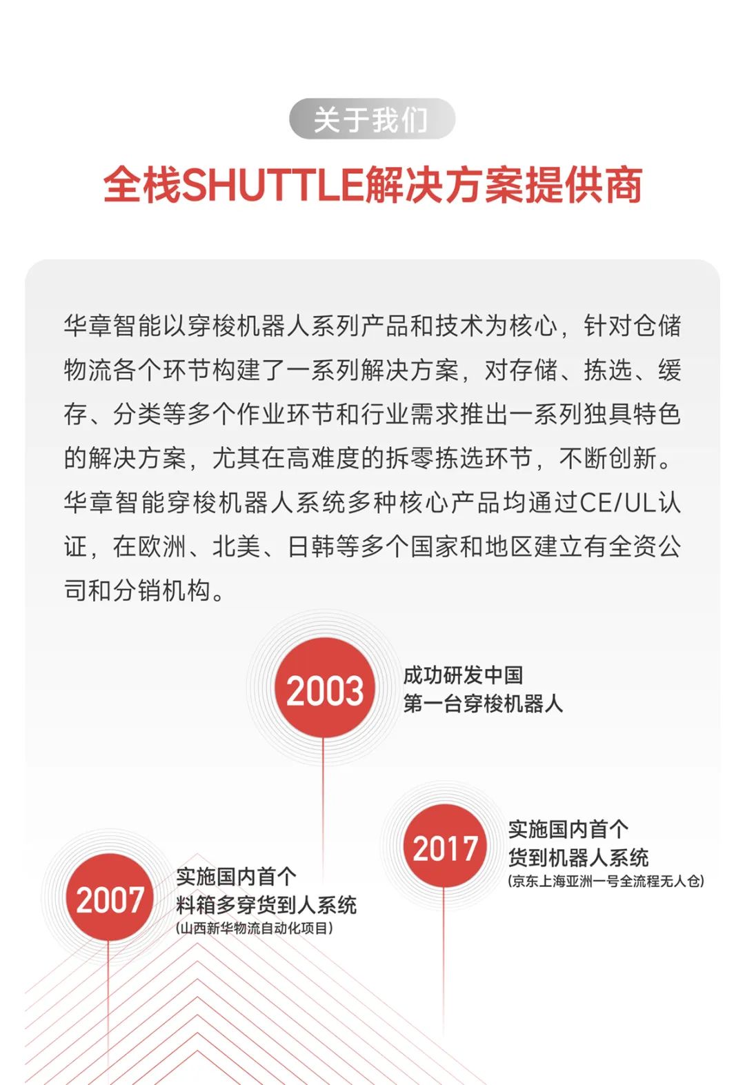 經(jīng)過(guò)十幾年的發(fā)展,華章已經(jīng)從貨到人設(shè)備及軟件供應(yīng)商轉(zhuǎn)型為內(nèi)部物流核心產(chǎn)品及整體解決方案供應(yīng)商。