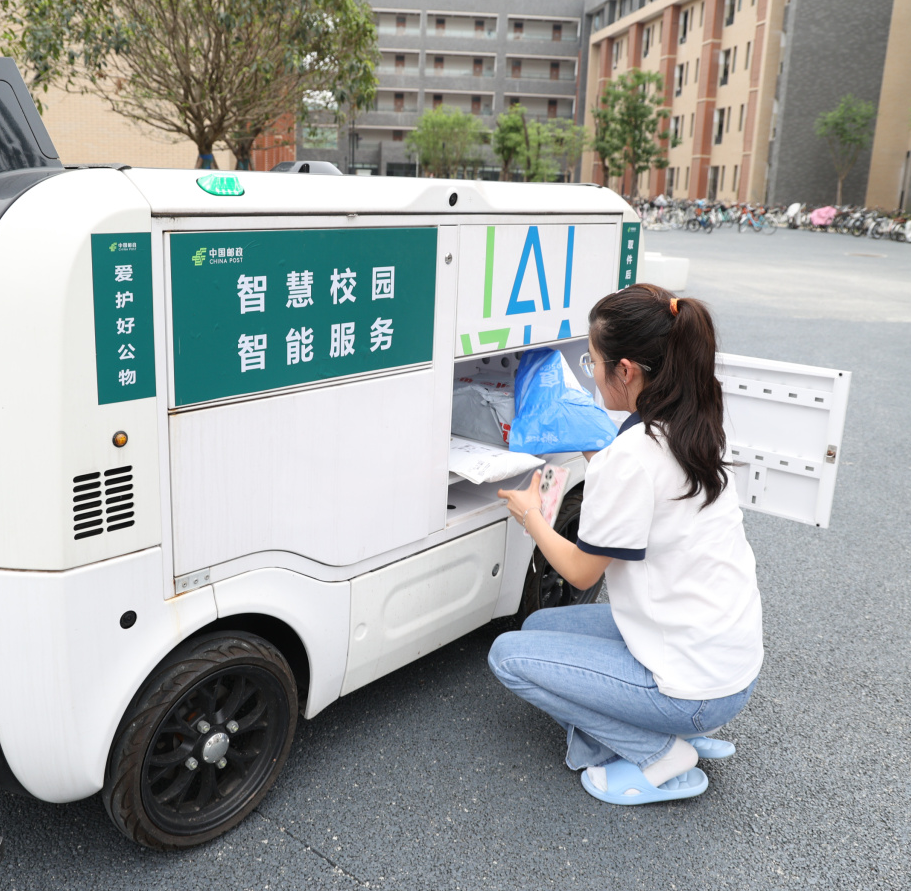 杭州市郵政分公司共投入寄遞無人車11輛,負責濱江、上城、余杭、桐廬等區(qū)域市內運輸的郵件轉駁、投遞工作。