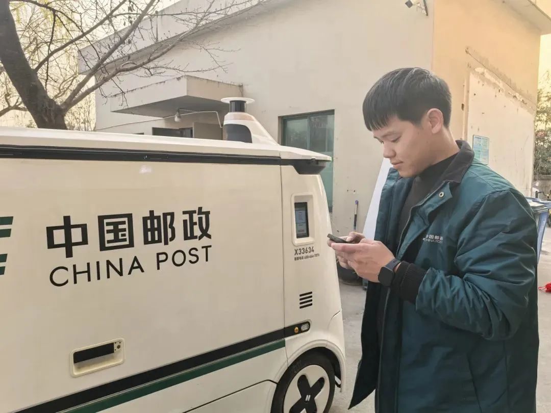 南陵縣郵政分公司率先在城區(qū)投入35輛無人配送車,為52家驛站提供快遞甩點配送服務。
