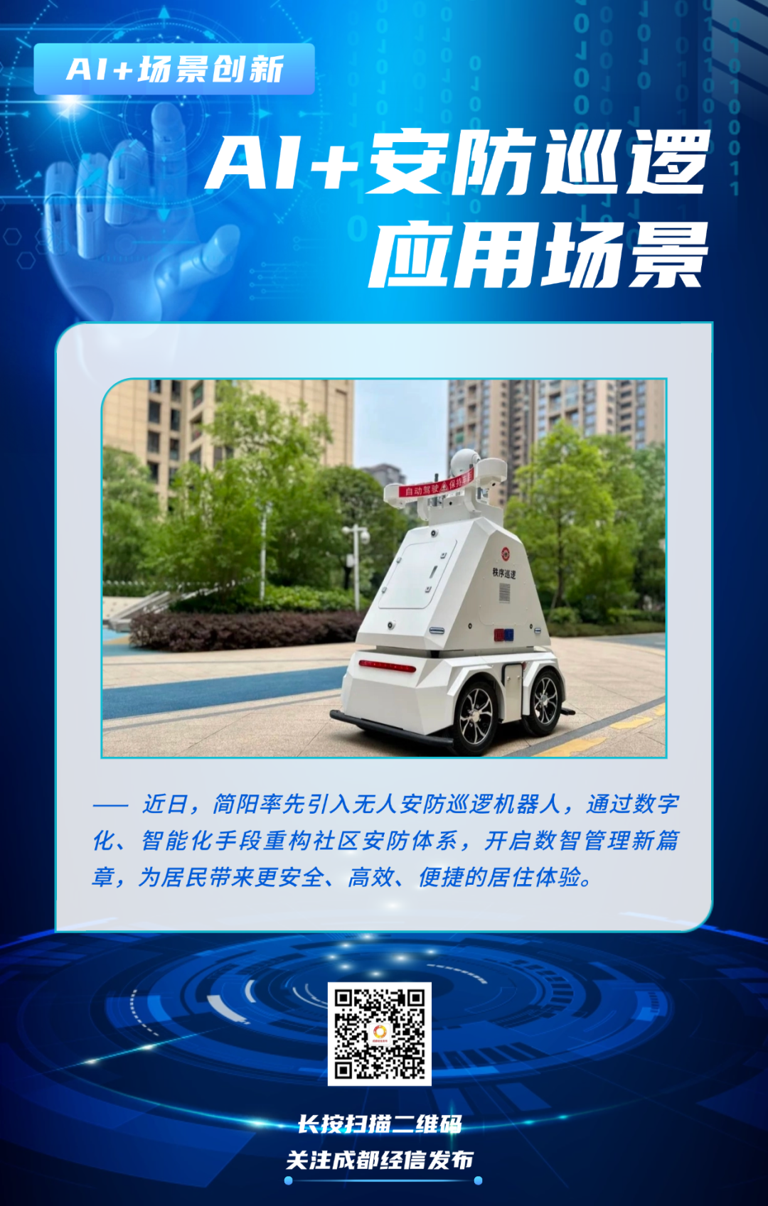 無(wú)人安防巡邏機(jī)器人按照預(yù)設(shè)路線,穿梭于小區(qū)的各個(gè)角落,在電量充足的情況下,機(jī)器人可以24小時(shí)不間斷巡邏……近日,簡(jiǎn)陽(yáng)首批無(wú)人安防巡邏機(jī)器人上崗,通過(guò)數(shù)字化、智能化手段構(gòu)建社區(qū)安防體系。