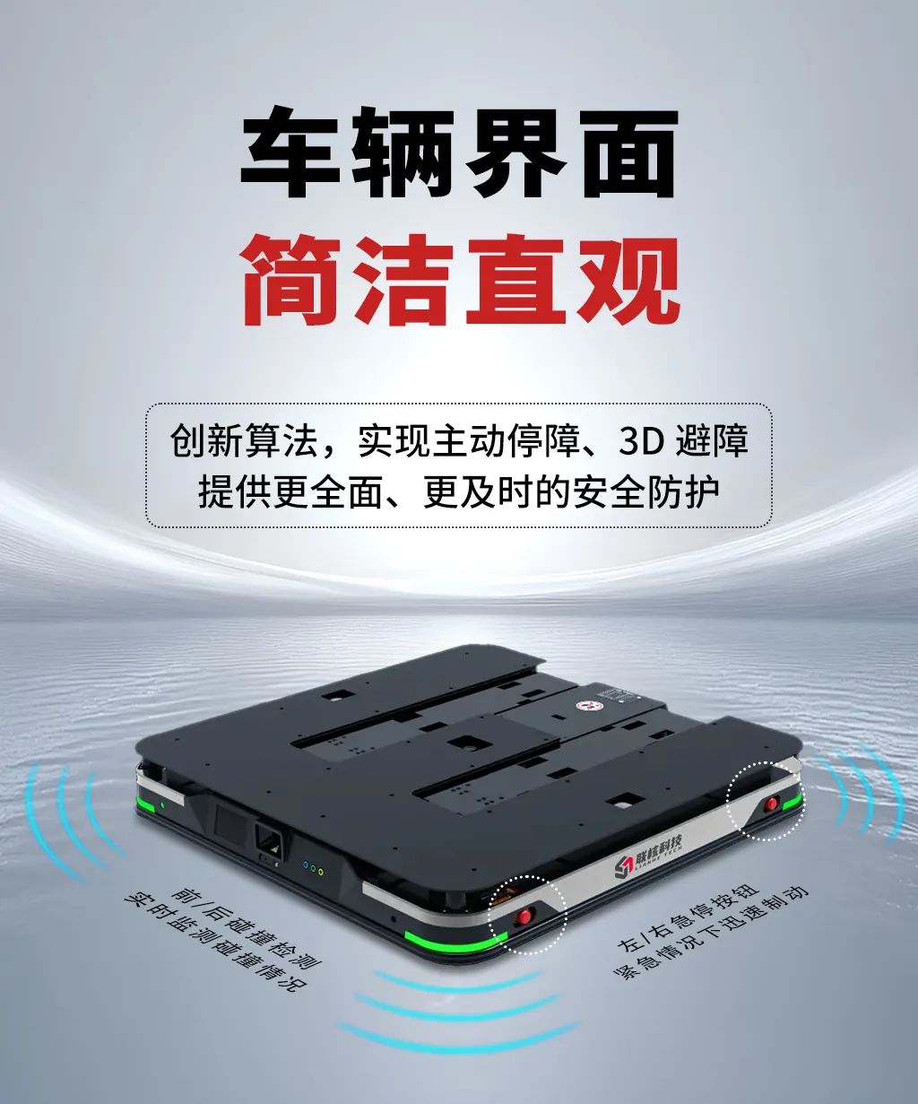 被動(dòng)防護(hù):LC10 配備了前/后碰撞檢測(cè)、左/右急停按鈕等多級(jí)被動(dòng)安全防護(hù)措施。碰撞檢測(cè)系統(tǒng)能夠?qū)崟r(shí)監(jiān)測(cè)車輛與周圍物體的碰撞情況,一旦發(fā)生碰撞,立即觸發(fā)制動(dòng)系統(tǒng),確保車輛迅速停止。