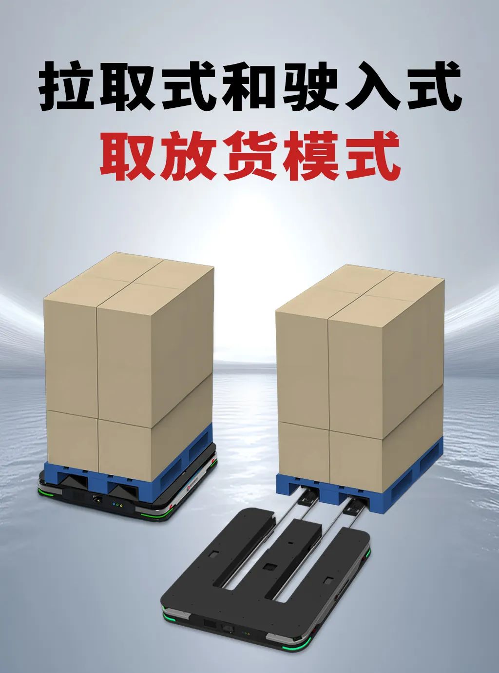 作為一款潛伏叉取式機(jī)器人,LC10 展現(xiàn)出了高柔性特點(diǎn)。其額定負(fù)載高達(dá) 1000kg,能夠滿足大多數(shù)工業(yè)場(chǎng)景下的搬運(yùn)需求。更為重要的是,LC10 可根據(jù)多樣化的使用場(chǎng)景,靈活配置“拉取式”和“駛?cè)胧?/span>”取放貨模式。