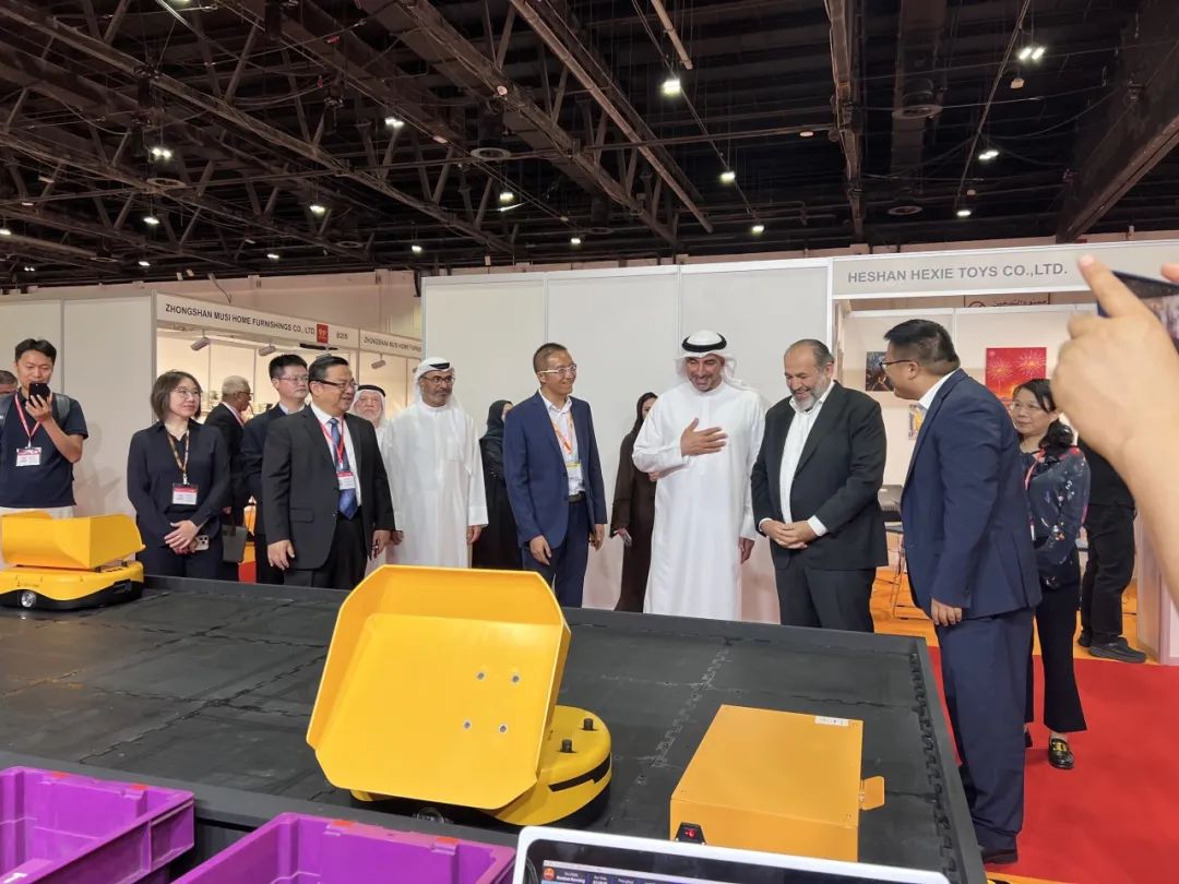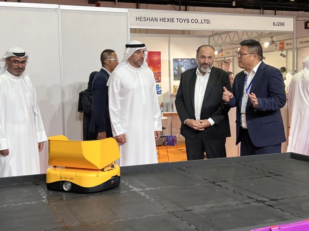 而來(lái)自迪拜當(dāng)?shù)氐闹匾钨e同樣陣容強(qiáng)大,迪拜世貿(mào)中心高級(jí)副總裁Mahir Julfar先生,以其豐富的國(guó)際貿(mào)易經(jīng)驗(yàn),對(duì)立鏢機(jī)器人在中東市場(chǎng)的發(fā)展機(jī)遇給予了肯定;迪拜Texmas紡織商人協(xié)會(huì)秘書長(zhǎng)Sachanand Manwani先生、聯(lián)席秘書長(zhǎng)Kishore Sawlani先生,從紡織行業(yè)物流痛點(diǎn)出發(fā),與我們探討了立鏢機(jī)器人的應(yīng)用解決方案;迪拜非洲商會(huì)CEO Maria Foster女士,也從跨區(qū)域合作的視角,為立鏢機(jī)器人開拓非洲市場(chǎng)提供了新的思路。