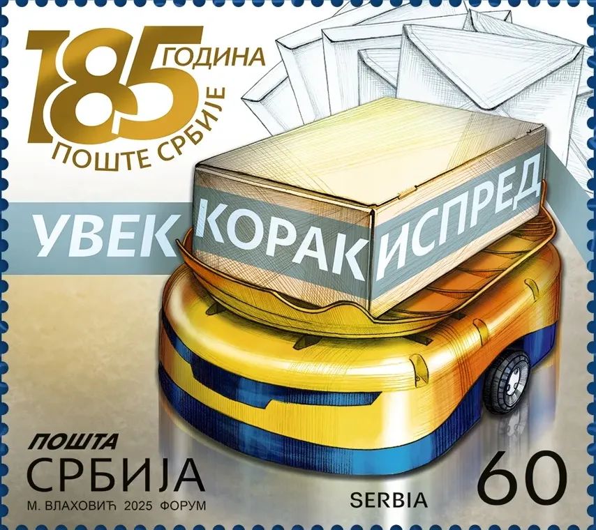 塞爾維亞郵政在貝爾格萊德部署了153臺立鏢機(jī)器人,這是巴爾干地區(qū)最大規(guī)模的郵政分揀機(jī)器人部署。甚至被印在了塞爾維亞郵政 185 周年紀(jì)念郵票上。
