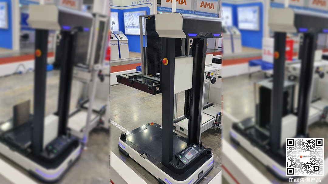 該產(chǎn)品適用于貼片車間SMT板箱和工裝載具的自動搬運和上下料。搭載藍芯自研的3D視覺導航、3D視覺避障技術(shù),定位穩(wěn)定且能夠檢測懸空、低矮障礙物。緊湊型外觀設(shè)計適合窄通道行駛。