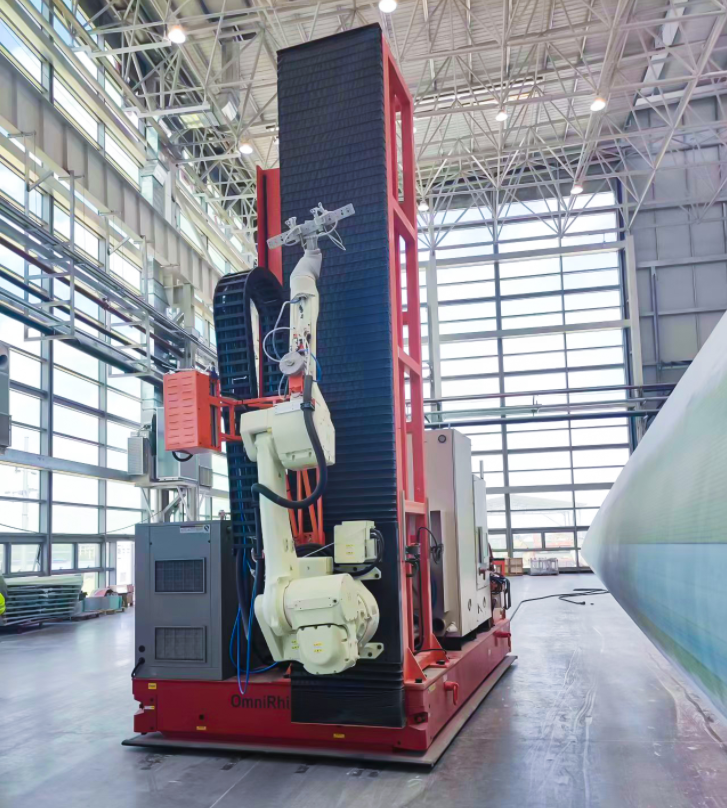 8t-OmniRhino 搭載機械臂進行風電葉片自動噴漆作業(yè)