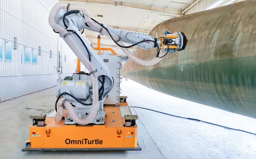 5t-OmniTurtle 搭載ABB機械臂進行風電葉片打磨作業(yè)