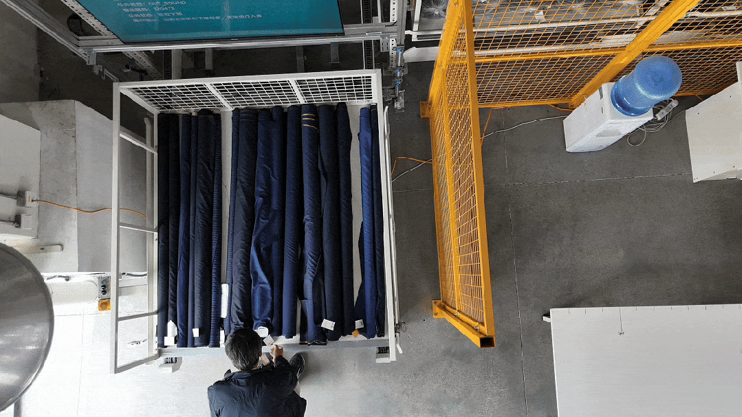 面對超過4000種SKU和高頻出入庫任務,系統(tǒng)智能調度設備資源,實現(xiàn)高效順暢作業(yè);同時,揀選完成的布料精準供應二層生產車間,保障“倉—產協(xié)同”高效運轉。