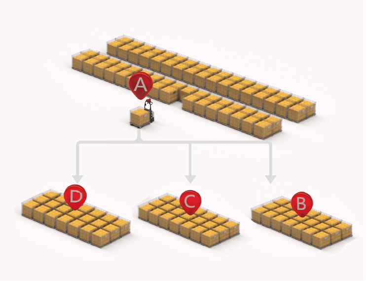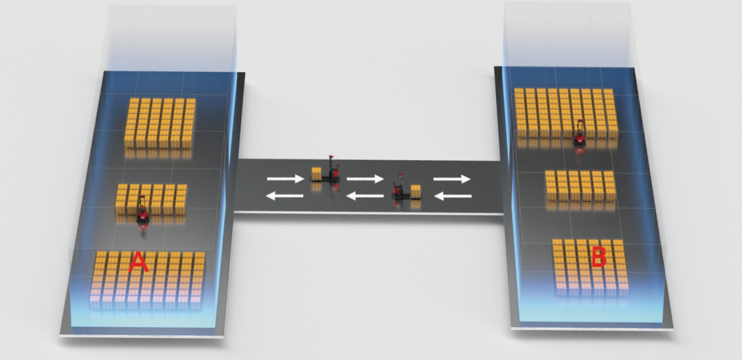 在點到點自動搬運的基礎上,EXP15小馬進一步實現(xiàn)點到列、點到區(qū)的多任務模式??赏瑫r接受多個搬運指令,一車多任務,大大提升倉儲搬運效率。