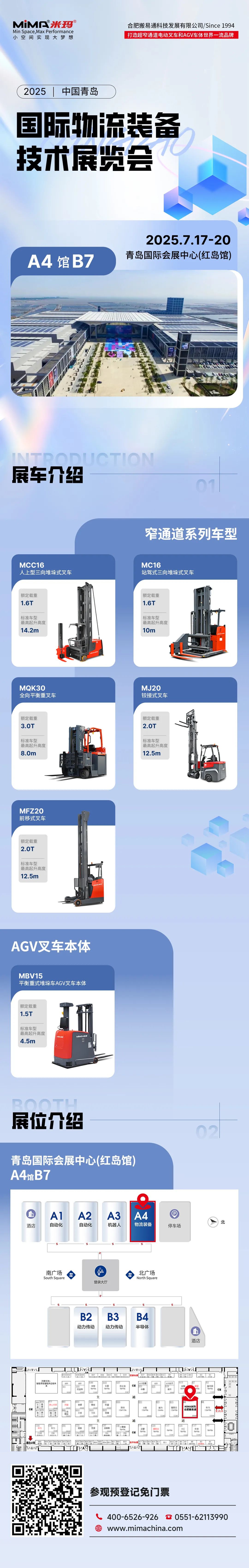 2025中國(guó)青島國(guó)際物流裝備技術(shù)展覽會(huì)(7月17日-20日)即將盛大開幕,合肥搬易通(MiMA米瑪)誠摯地邀請(qǐng)您蒞臨青島國(guó)際會(huì)展中心(紅島館)A4館B7展位參觀交流,共同探討物流裝備行業(yè)的發(fā)展趨勢(shì)和創(chuàng)新應(yīng)用。