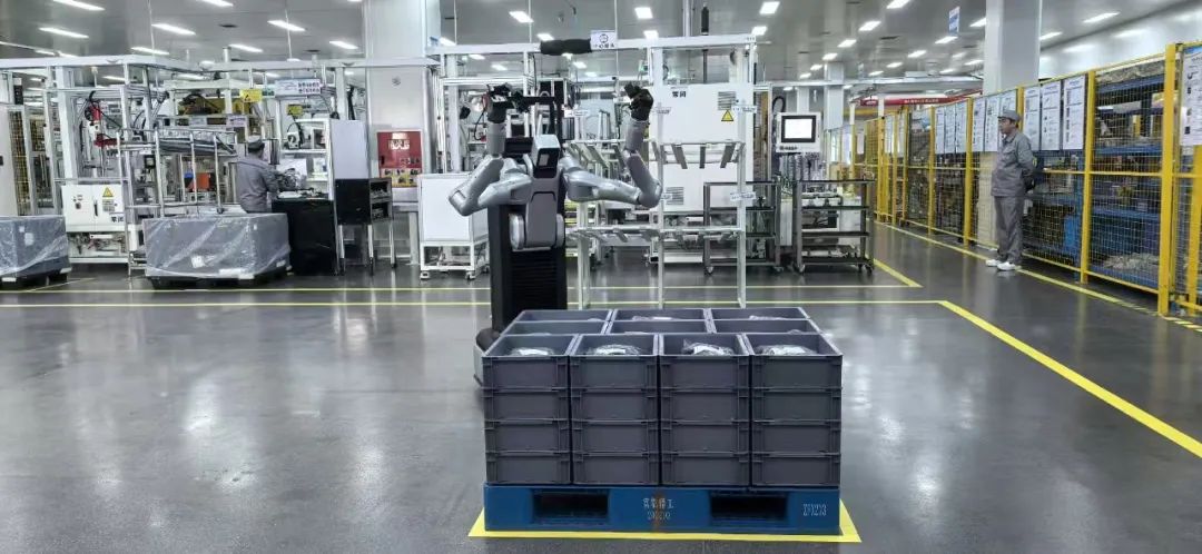 通過(guò)雙臂協(xié)作與高精度操作,A2-W可抓取、搬運(yùn)、放置不同尺寸與重量的周轉(zhuǎn)箱,并且在托盤(pán)料箱碼放不規(guī)范時(shí),它還可自主識(shí)別并調(diào)整姿態(tài)抓取,在作業(yè)過(guò)程中出現(xiàn)異常時(shí),也能自主糾錯(cuò)并持續(xù)運(yùn)行,顯著提升整體作業(yè)效率。