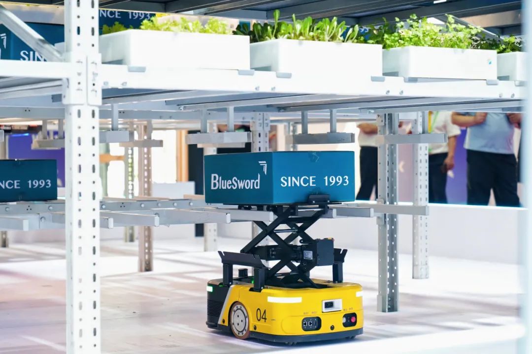 這是蘭劍智能智慧農(nóng)業(yè)系統(tǒng)的首次展出亮相,現(xiàn)場觀眾對智能倉儲與農(nóng)業(yè)的結(jié)合產(chǎn)生了濃厚的興趣。機器人取放的不再是一個個料箱,而是一盤盤新鮮的蔬菜,讓蔬菜種植從平面化走向立體種植,從傳統(tǒng)人工采收走向全流程自動化。這樣的種植方式打破了傳統(tǒng)種植的局限性,大幅提高土地資源利用率,并可實現(xiàn)產(chǎn)量的倍增,大幅減少人工投入。整個環(huán)境人為可調(diào),不受自然環(huán)境的制約,實現(xiàn)一年365天的全周期持續(xù)產(chǎn)出。
