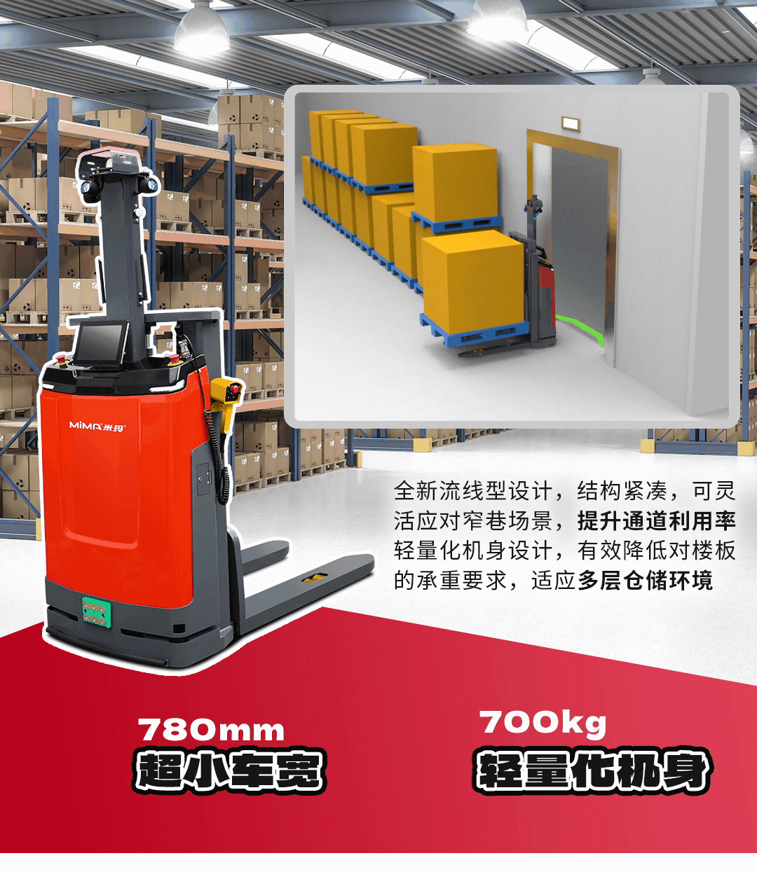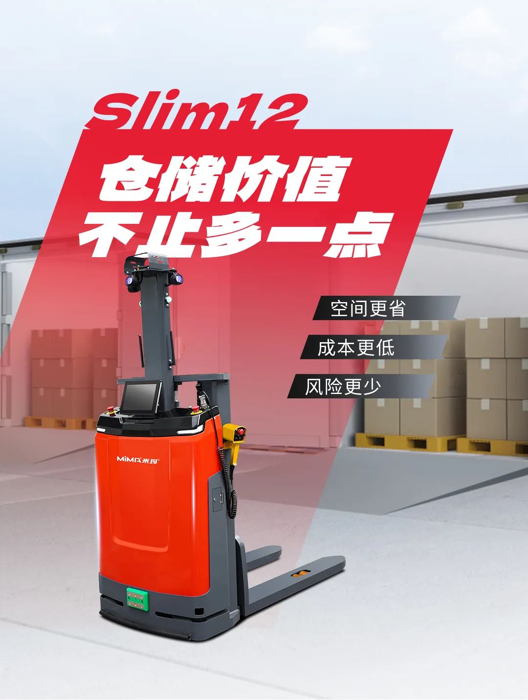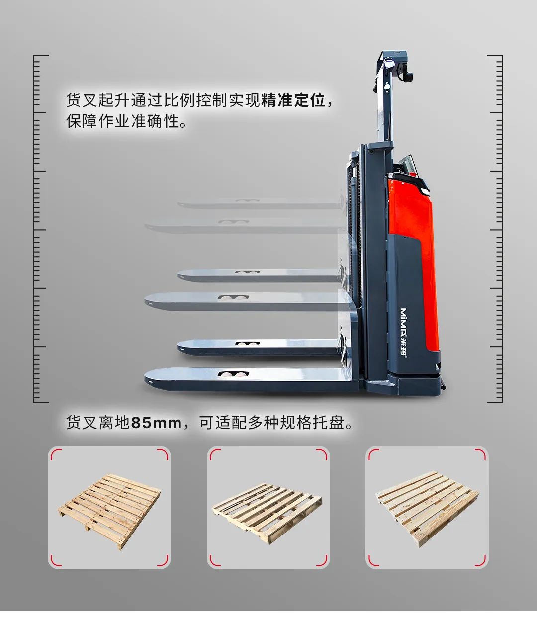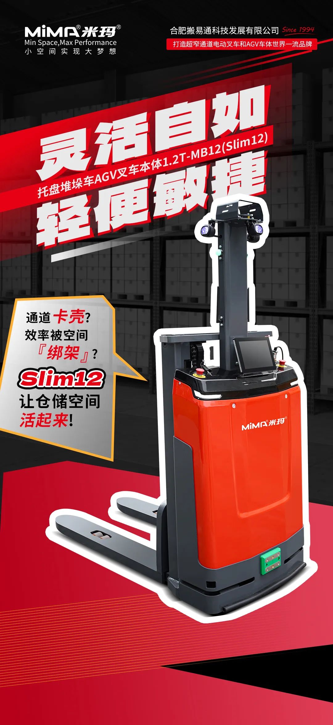 二十多年不斷進(jìn)取, MIMA 品牌以公司強(qiáng)大的科研創(chuàng)新團(tuán)隊(duì)為依托,以“安全、耐用、舒適、低碳(環(huán)保)”為設(shè)計(jì)理念,為客戶提供500KG —100000KG應(yīng)用解決方案、倉(cāng)儲(chǔ)設(shè)備及 相關(guān)服務(wù)。 通過(guò)不斷的技術(shù)創(chuàng)新和專利積累,現(xiàn)在我們的產(chǎn)品已涉及12大類50多個(gè)品種,如電動(dòng)托盤車搬運(yùn)車、托盤堆垛車、前移式叉車、平衡重式叉車、牽引拖車、揀選車、窄巷道叉車、四向叉車、側(cè)面叉車和非常物流設(shè)備、AGV、無(wú)人巷道堆垛機(jī)等等。產(chǎn)品廣泛 應(yīng)用于醫(yī)藥、食品、化工、電子、機(jī)械、家具、物流等各個(gè)行業(yè)。