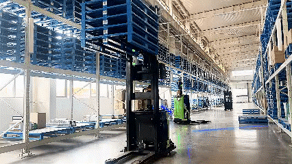 運(yùn)輸繁忙的倉(cāng)庫(kù)之中,高大整齊的貨架之間,一臺(tái)臺(tái)身披綠色時(shí)尚“外衣”的AGV往來(lái)穿梭、相互配合,自動(dòng)完成搬運(yùn)任務(wù),全程無(wú)人參與……這不是電影,這是太重在倉(cāng)儲(chǔ)物流領(lǐng)域的又一位“智慧型選手”——1.6噸堆垛式AGV!