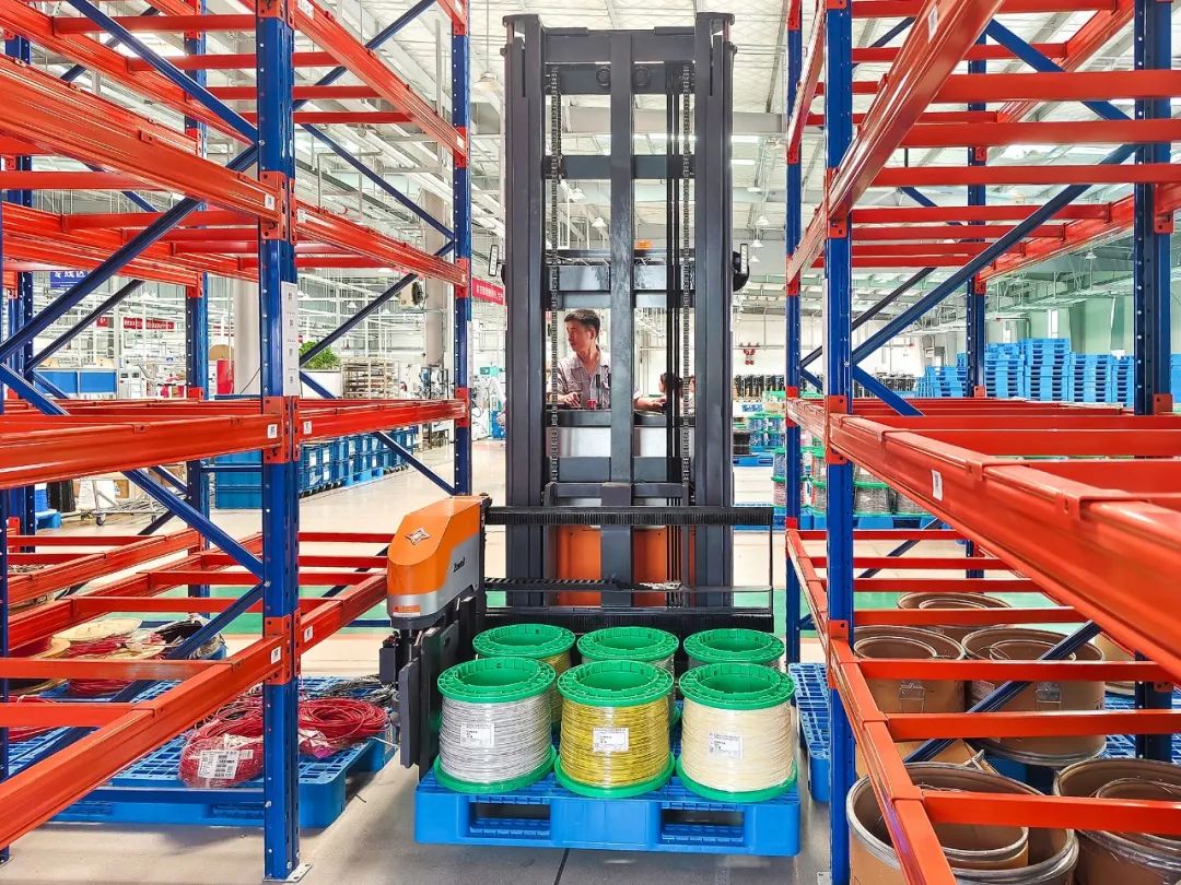 2.兩臺(tái)窄巷道叉車均配有埋地磁條輔助駕駛,無需駕駛員把控方向即可以穩(wěn)定的直線在窄巷道中行駛,大大降低了操作難度,同時(shí)還可顯著減少車輛與貨架碰撞的風(fēng)險(xiǎn),提高訂單出庫的穩(wěn)定性。