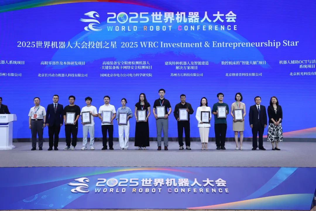 大會(huì)精心打造的“2025‘投創(chuàng)之星’創(chuàng)新創(chuàng)業(yè)項(xiàng)目路演暨具身智能的中國(guó)式創(chuàng)新專題活動(dòng)”搭建了“技術(shù)—資本—產(chǎn)業(yè)”的高效對(duì)接平臺(tái),吸引了全球優(yōu)質(zhì)創(chuàng)新項(xiàng)目參與,現(xiàn)場(chǎng)達(dá)成多項(xiàng)合作意向,為前沿技術(shù)的商業(yè)化落地按下加速鍵。本次活動(dòng)共遴選出10大優(yōu)秀項(xiàng)目,北京市經(jīng)濟(jì)和信息化局副局長(zhǎng)姜洪朝,北京經(jīng)濟(jì)技術(shù)開發(fā)區(qū)管委會(huì)副主任梁靚,中國(guó)電子學(xué)會(huì)副秘書長(zhǎng)張毅,中國(guó)電子學(xué)會(huì)副秘書長(zhǎng)曹學(xué)勤為“2025世界機(jī)器人大會(huì)投創(chuàng)之星”得主頒獎(jiǎng)。