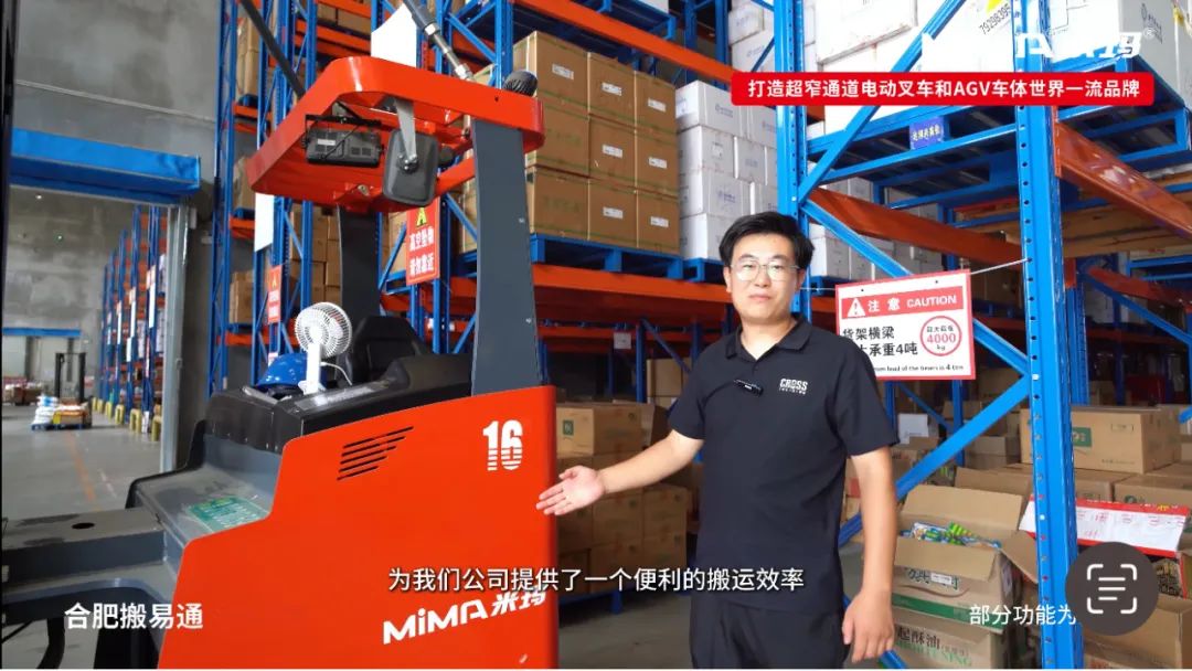 經(jīng)過多方考察,客戶最終選擇了合肥搬易通(MiMA米瑪)的坐駕三向堆垛式叉車MCA16,成功實現(xiàn)從地堆式倉儲到高位密集倉儲的轉型升級。