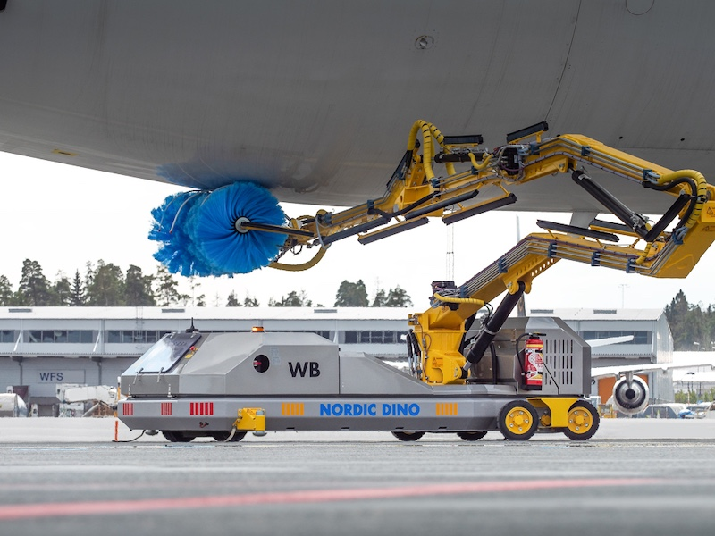 瑞典 Nordic Dino 成立于 1983 年,是全球領先的飛機外部清洗機器人制造商,隸屬于 Avia Solutions Group,總部和生產(chǎn)基地位于斯德哥爾摩地區(qū)。公司三十多年來專注于研發(fā)和制造自動化、半自動化的飛機清洗設備,客戶涵蓋民航和軍用航空運營商。其產(chǎn)品線覆蓋從常見的寬體機到超大型飛機,主要型號包括 Nordic Dino WB 和 Nordic Dino XWB。前者工作高度可達 11 米,適合空客 A330、A350 以及波音 B777、B787 等機型;后者工作高度更高,可覆蓋 A380、B747 等大型飛機。設備提供柴油或電動驅動兩種方案,滿足不同機場的環(huán)保和使用需求。