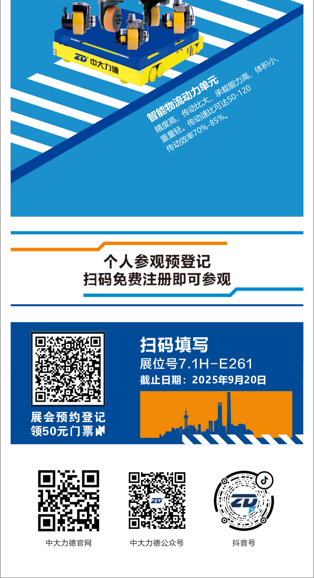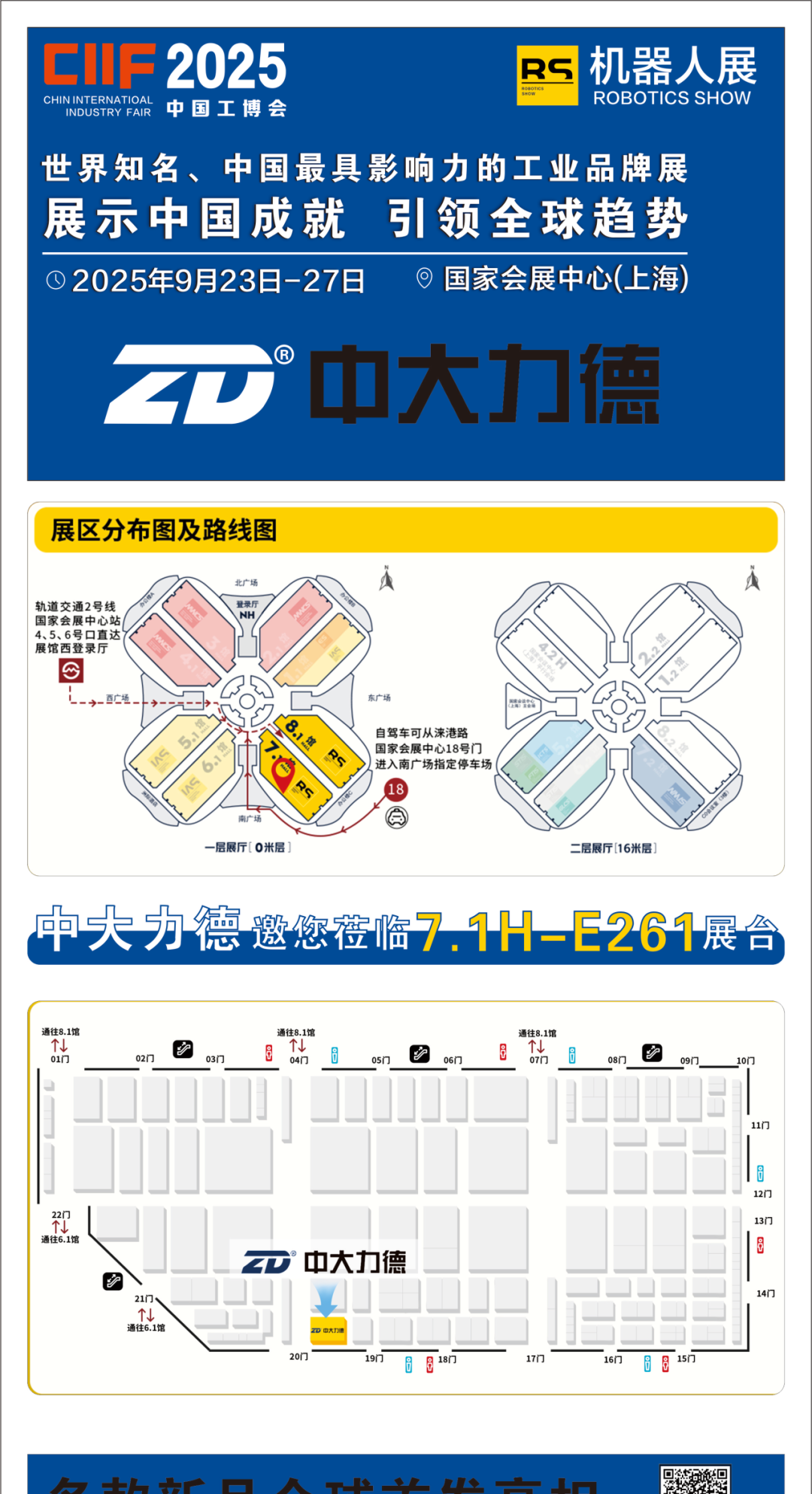 2025中國國際工業(yè)博覽會(簡稱:工博會)將于9月23日至27日在國家會展中心(上海)隆重舉行,中大力德將攜全新產(chǎn)品與創(chuàng)新成果亮相7.1H-E261展位,為您呈現(xiàn)一場智能制造的技術(shù)盛宴。