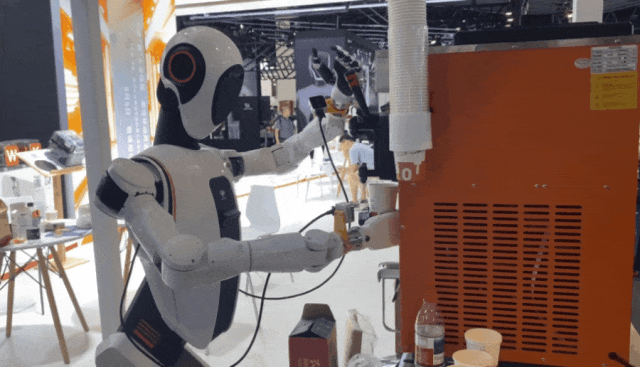 抓住夏天的“尾巴”,巡霄化身服務(wù)員亮相展臺,為觀眾線上自制的冰激凌,展現(xiàn)工業(yè)具身智能的柔性操作,快來圍觀~