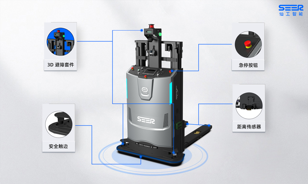 SFL-CDD15 搭載仙工智能叉車專用版通用型控制器 SRC-2000-F(S),結(jié)合高精度激光 SLAM導(dǎo)航技術(shù)和基于 AI 深度學(xué)習(xí)的自適應(yīng)識(shí)別系統(tǒng),可實(shí)現(xiàn)對(duì)多種載具(如托盤、料籠等)的自適應(yīng)識(shí)別與精準(zhǔn)叉取,支持高位堆垛、線邊接駁、平面搬運(yùn)等多類作業(yè)模式,大幅提升自動(dòng)化水平。
