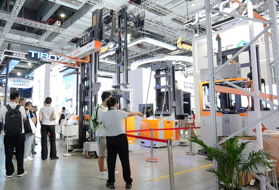 卓一展位上,AGV三向叉車在動態(tài)演示區(qū)中流暢演示自動運輸、精準導航、高精度存取貨物與全方位智能避障等無人化作業(yè)能力,展現(xiàn)了卓一在無人化物流解決方案上的成熟技術,引來眾多客商圍觀,成為現(xiàn)場咨詢熱門。
