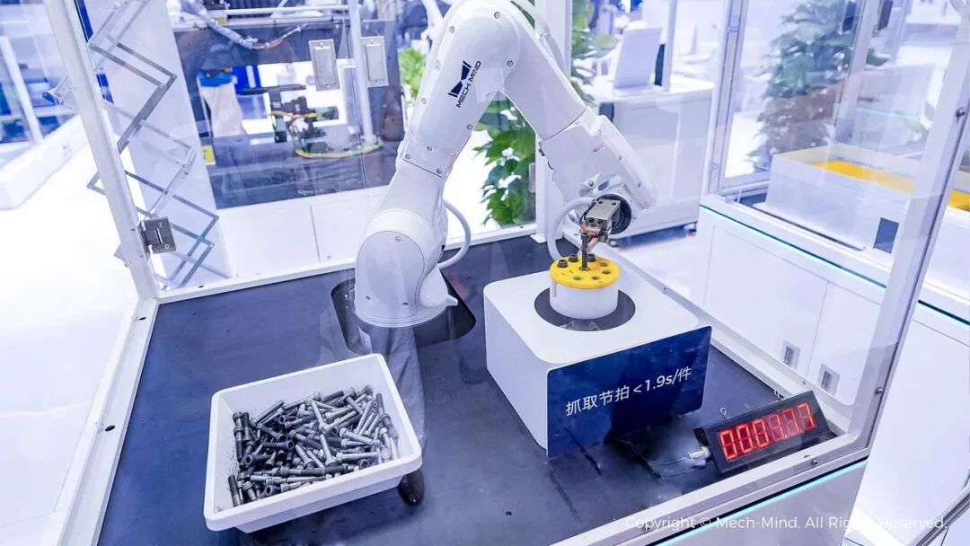 現(xiàn)場,梅卡曼德還特別展示了通用“眼+腦”強大的AI成像能力。Mech-Eye高精度3D相機(jī)采用自研核心器件及先進(jìn)AI成像算法,能夠在不同光照環(huán)境及背景干擾下對目標(biāo)物體高質(zhì)量成像,有效解決物體材質(zhì)多樣、結(jié)構(gòu)精密、顏色/細(xì)節(jié)豐富、高反光、透明等成像難題。
