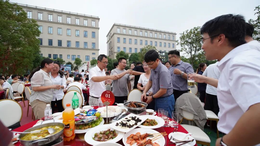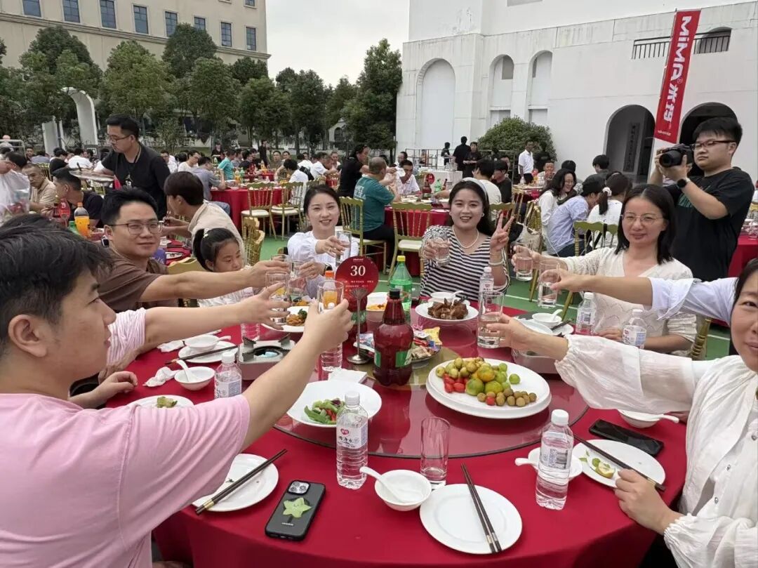 在樂隊(duì)營(yíng)造的動(dòng)人氛圍中,晚宴進(jìn)入了最溫馨的交流時(shí)刻。公司領(lǐng)導(dǎo)層走入席間,向每一桌的員工舉杯致意,表達(dá)感謝。同事們也紛紛離席,與平日并肩作戰(zhàn)的伙伴、不同部門的同事互致祝福,暢談工作與生活。酒杯碰撞的清脆聲、此起彼伏的歡笑聲、深沉而飽滿的樂隊(duì)演奏聲,共同匯成了一曲名為“MiMA大家庭”的和諧樂章。這一刻,工作的疲憊得以舒緩,同事的情誼愈發(fā)深厚,企業(yè)的凝聚力在月光與音樂中悄然升華。