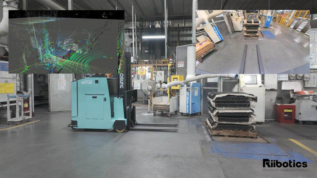 Riibotics 的“棕地機(jī)器人叉車(chē)”方案與傳統(tǒng)的“綠地自動(dòng)化”路徑區(qū)別明顯。后者通常要求廠房預(yù)設(shè)軌道、磁條、二維碼或重構(gòu)物流路徑,而 Riibotics 則致力于讓機(jī)器人在未做基礎(chǔ)設(shè)施調(diào)整的真實(shí)環(huán)境中運(yùn)行。借助 AI 感知、環(huán)境認(rèn)知、路徑規(guī)劃和導(dǎo)航融合,其機(jī)器人能夠識(shí)別任意位置的貨物、空位,并在與人類操作員共享空間的環(huán)境中執(zhí)行運(yùn)輸任務(wù)。Riibotics 稱,其系統(tǒng)無(wú)需依賴導(dǎo)軌、磁帶或二維碼控制,也無(wú)需對(duì)倉(cāng)庫(kù)結(jié)構(gòu)進(jìn)行大規(guī)模改造,從而真正實(shí)現(xiàn)“插上就用”的智能化搬運(yùn)。