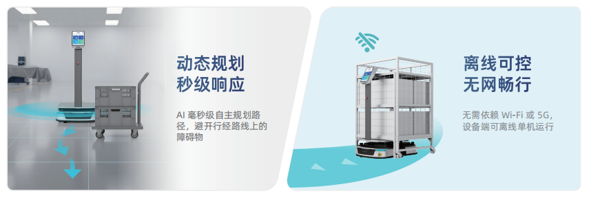 即使在無網(wǎng)絡的地下倉庫或偏遠區(qū)域,它也能離線運行,自主決策,徹底擺脫對5G、Wi-Fi和集群服務器的依賴。