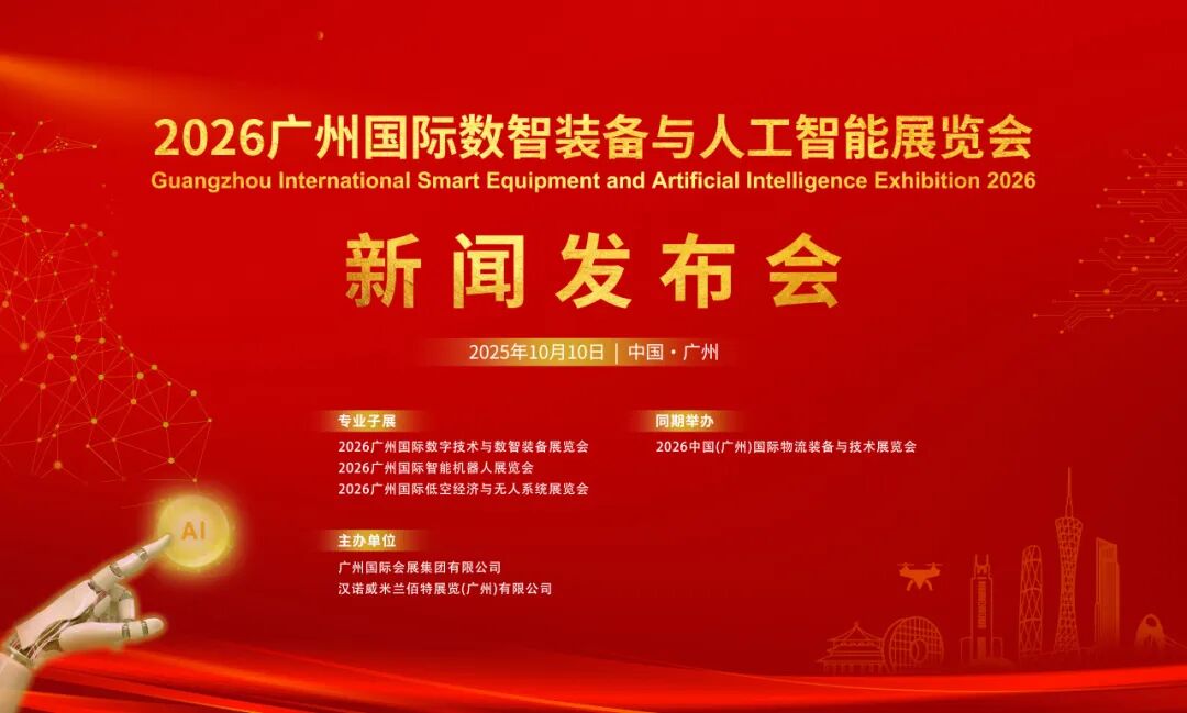2025年10月10日上午,2026廣州國際數(shù)智裝備與人工智能展覽會新聞發(fā)布會在中國大酒店隆重舉行。展會由廣州國際會展集團有限公司與漢諾威米蘭佰特展覽(廣州)有限公司聯(lián)合主辦,并正式宣布將于2026年6月3日至5日在廣交會展館D區(qū)舉辦。